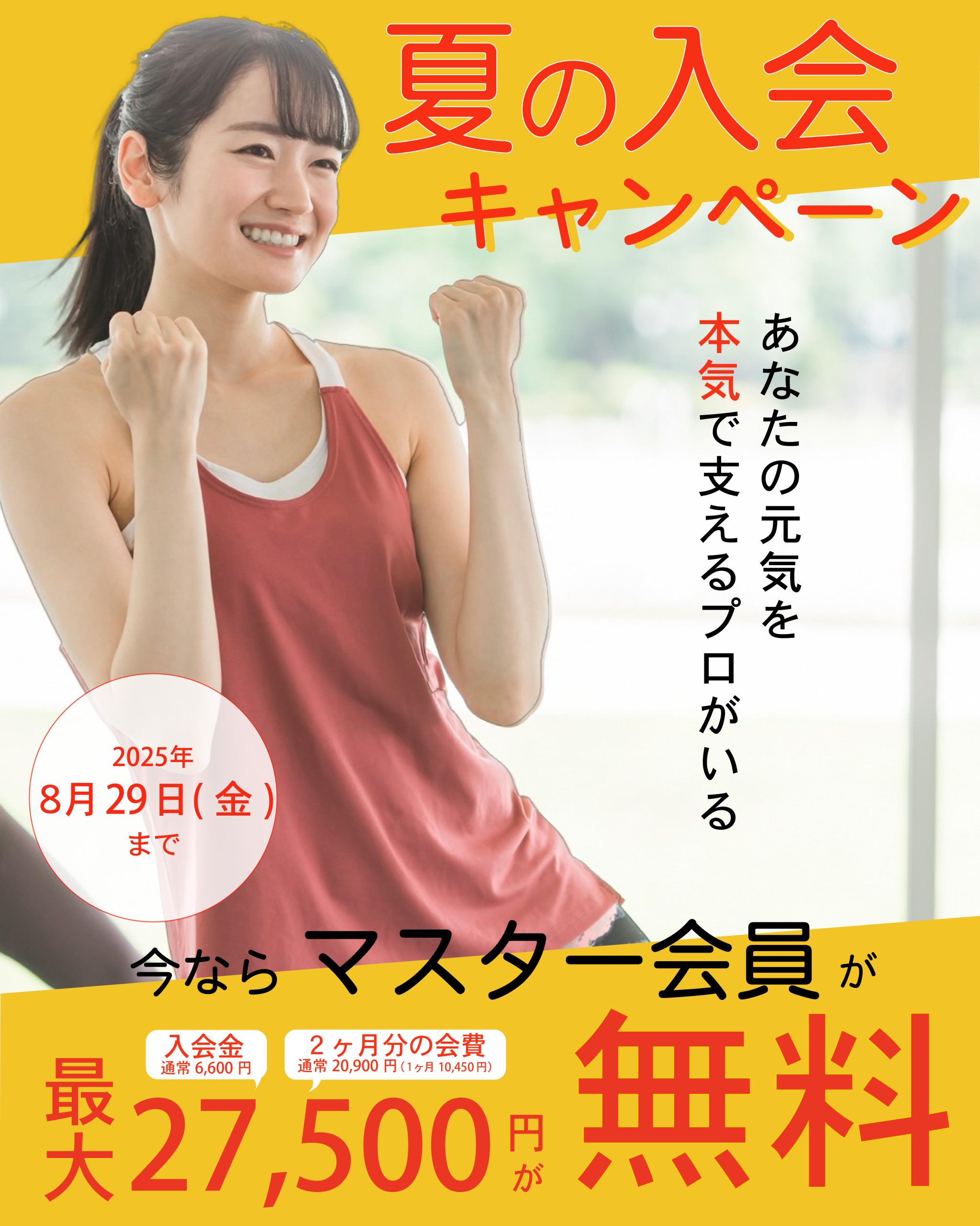 入会金(6,600円)+月会費2か月分(20,900円)の合計27,500円が無料!